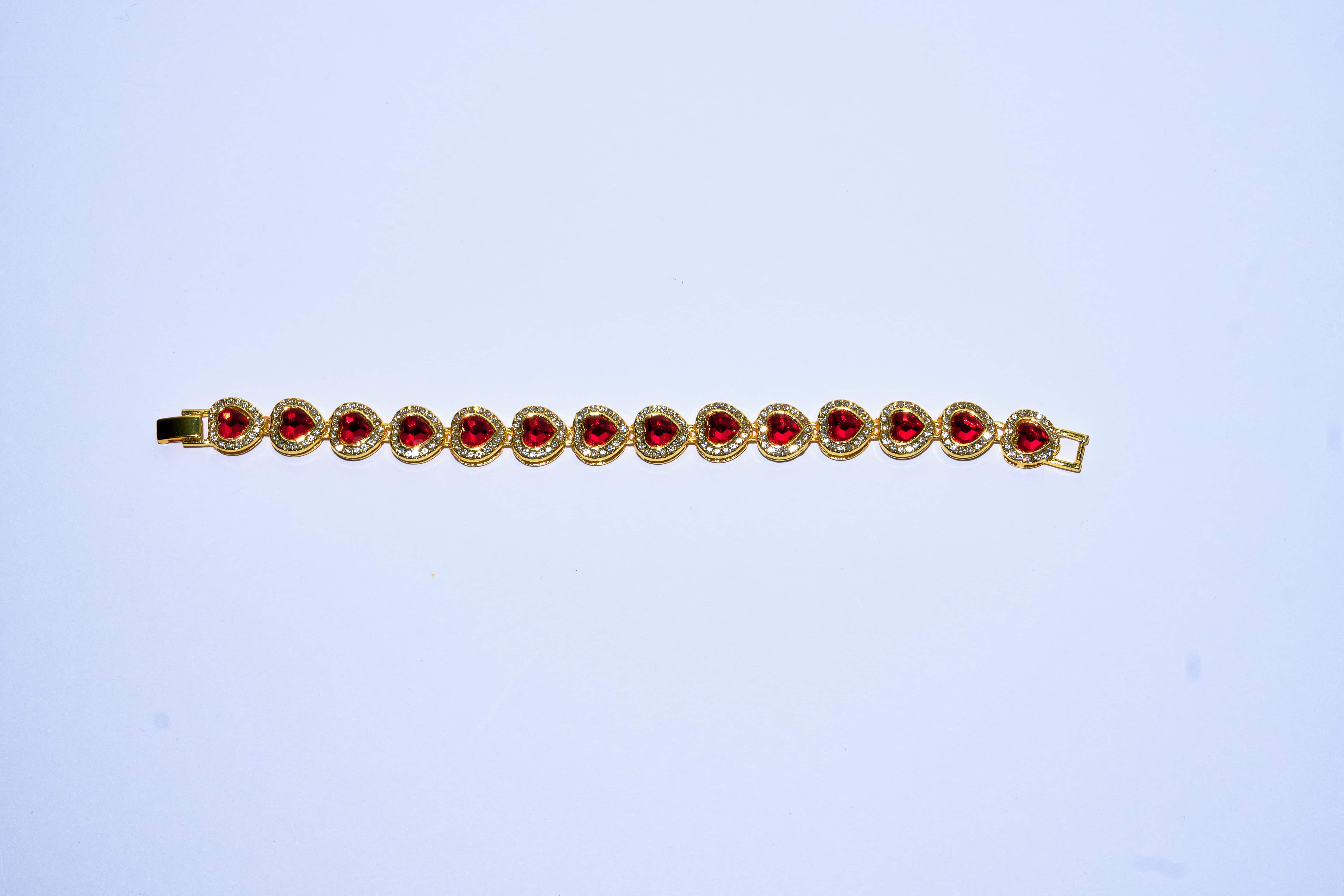 Materials: The Ace of Hearts Bracelet boasts exceptional craftsmanship. Choose between the timeless elegance of 18K Gold Plating or the cool and contemporary Silver Plating, both beautifully accentuating the radiant red crystals and rhinestones that adorn the piece.